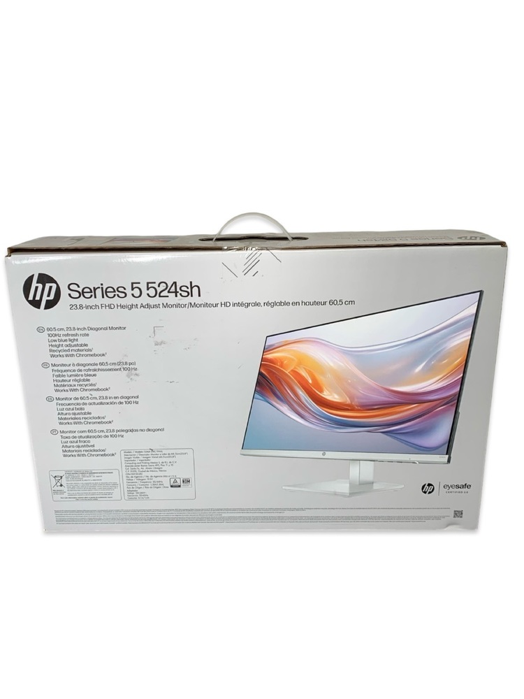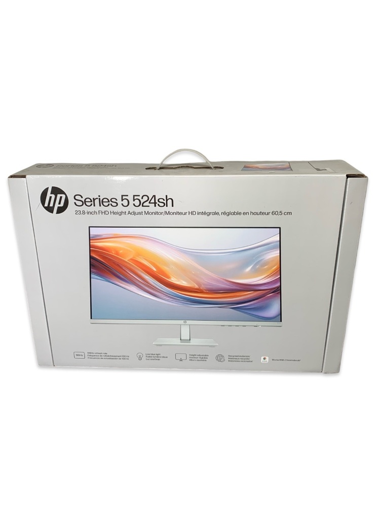 This HP Series 5 524sh 23.8-inch Full HD monitor is brand new in its original box. While the packaging may show light shelf wear, the monitor itself is unused and remains in factory-new condition.