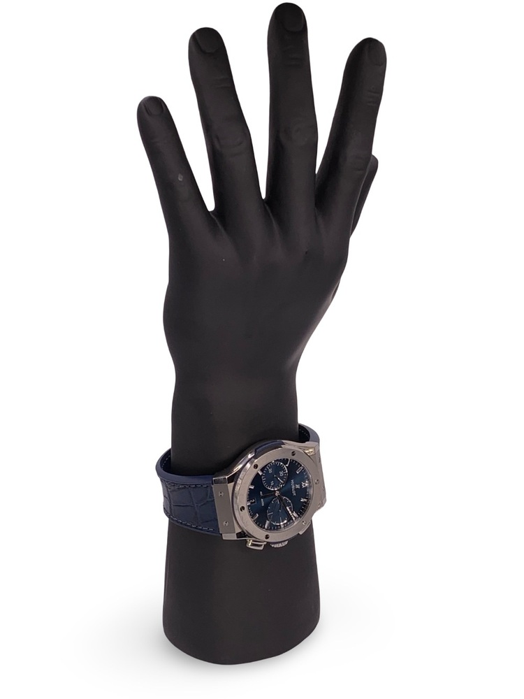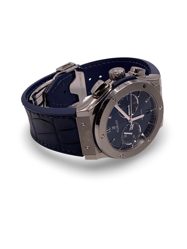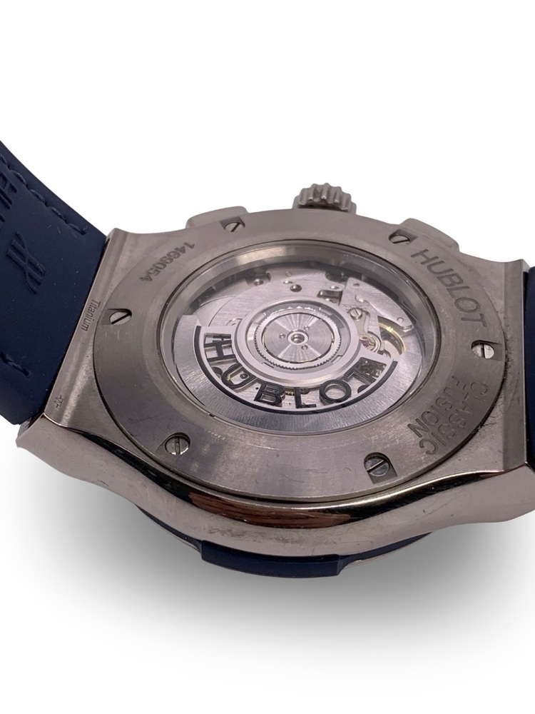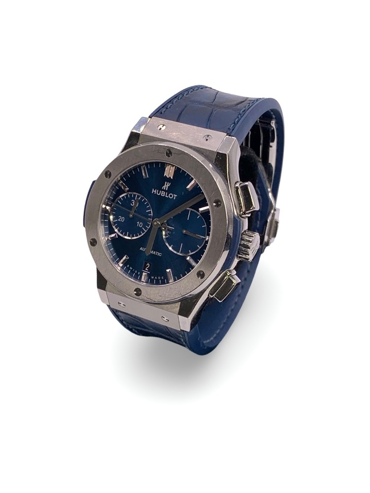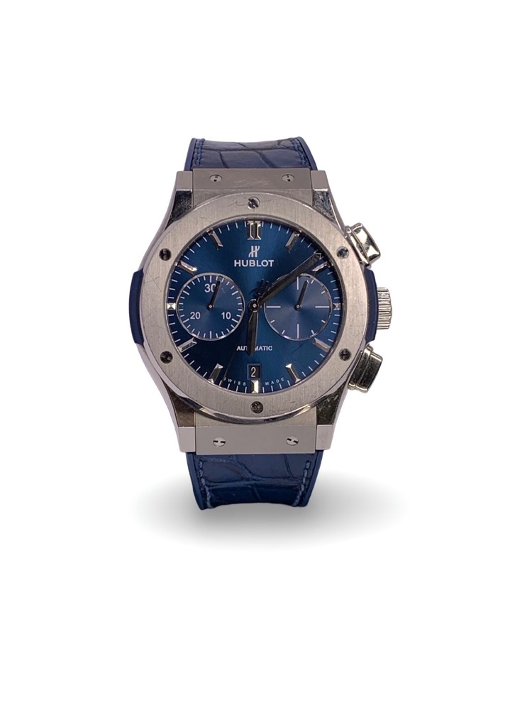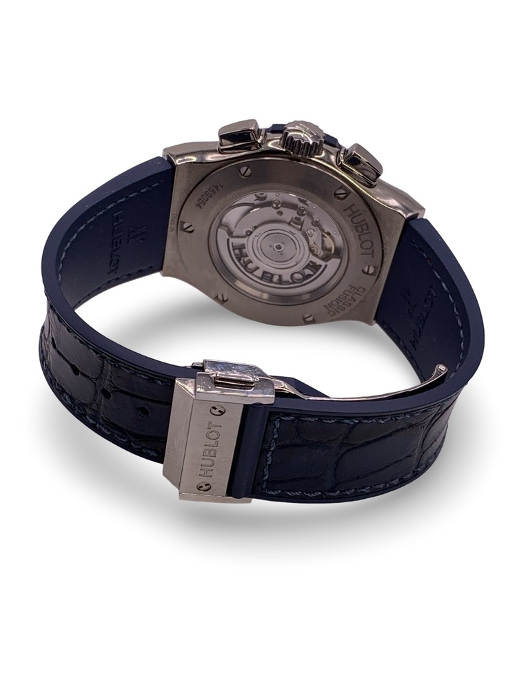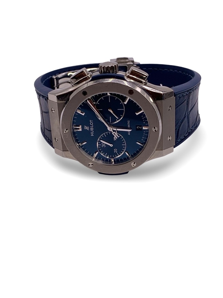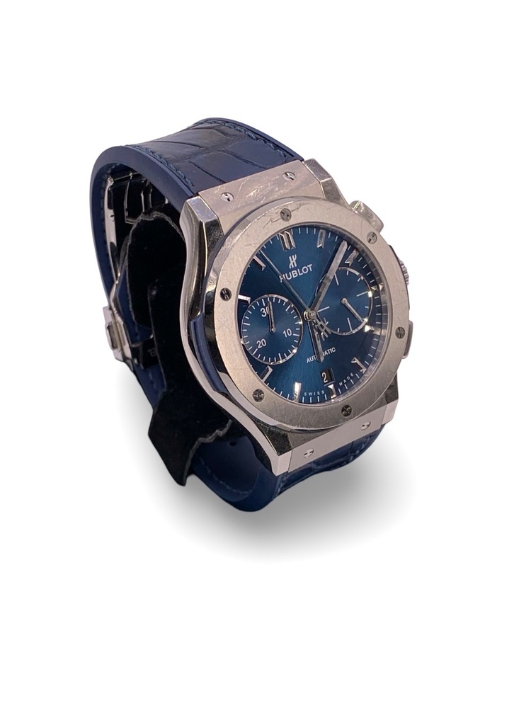 Hublot 521.NX.7170.LR Classic Fusion Chronograph 45mm Titanium Blue Dial Blue Leather Band Watch – No Box or Paperwork