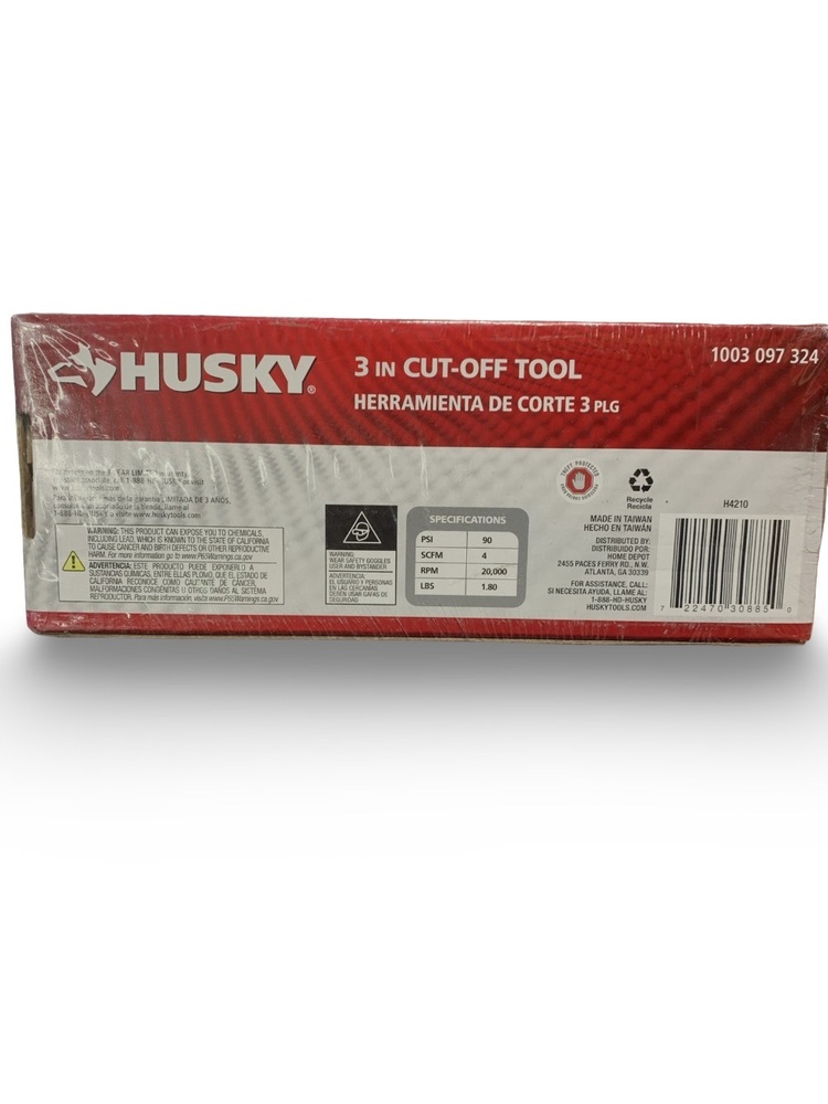 Up for sale is a brand new, unused Husky H4210 3" Pneumatic Cut-Off Tool, still sealed in its original box. This high-quality air-powered tool is designed for precise metal cutting, trimming, and fabrication jobs. Perfect for both professional mechanics and DIY enthusiasts.