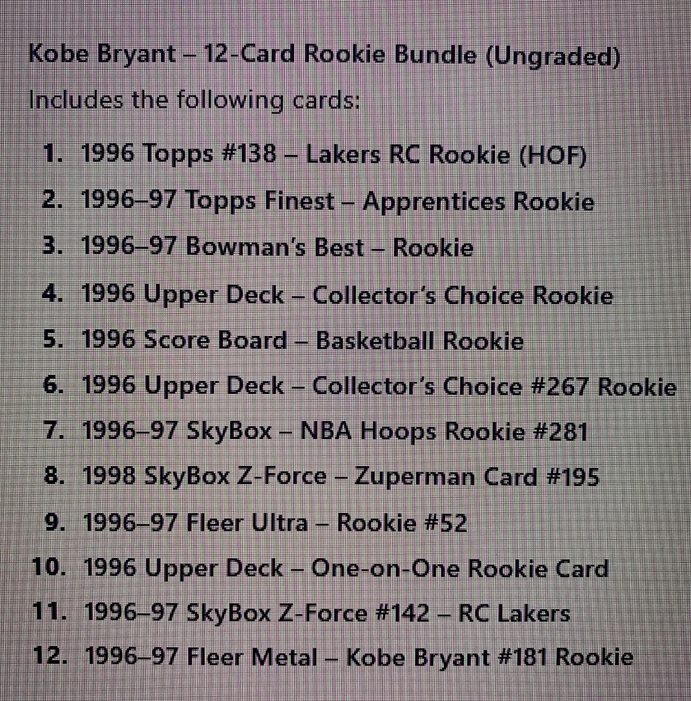 Kobe Bryant 12-Card Rookie Bundle (Ungraded)