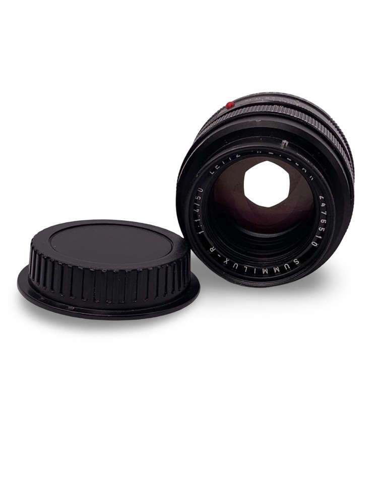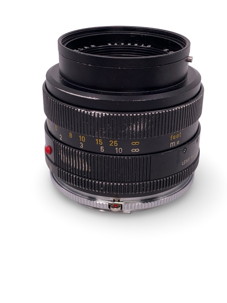 This listing is for an authentic Leica Leitz SUMMILUX-R 50mm f/1.4 3-Cam Lens featuring a built-in retractable hood. Known for its exceptional sharpness and classic Leica rendering, this fast-aperture lens is a favorite among collectors and photographers alike.