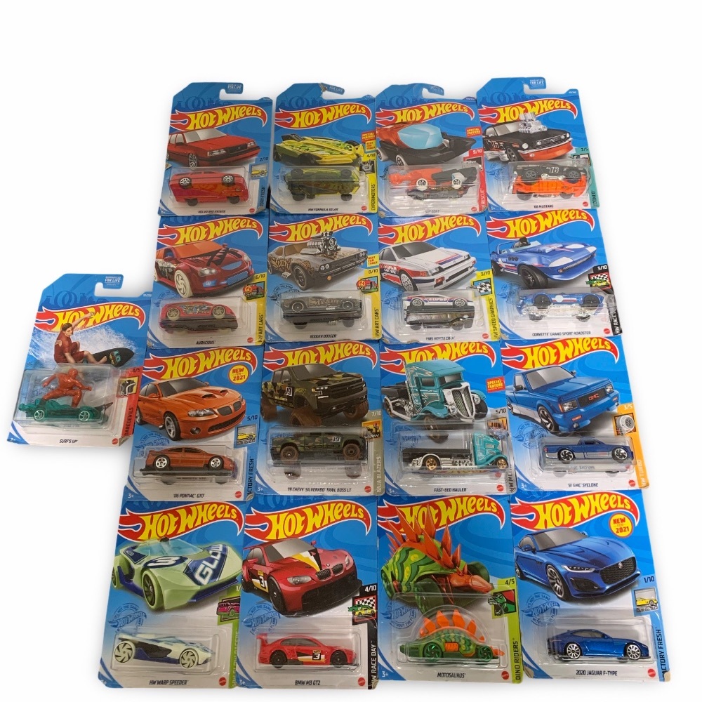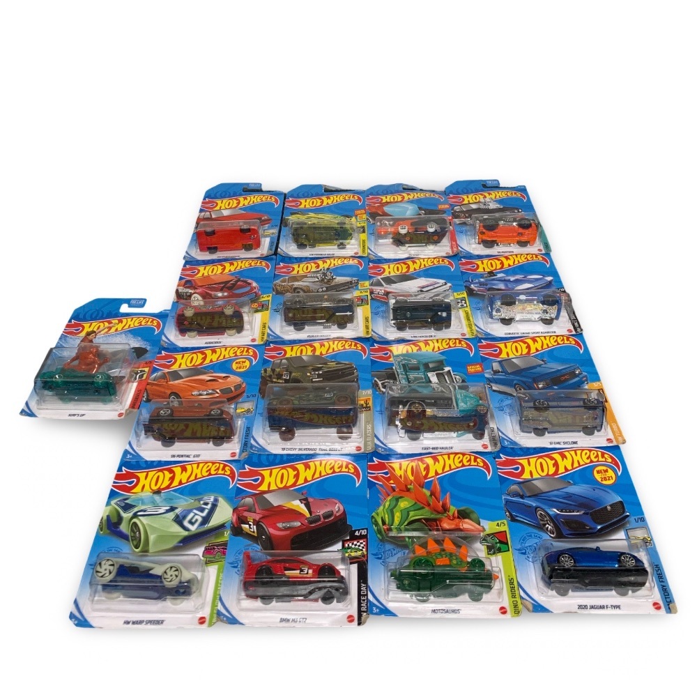 Up for sale is a lot of 17 brand new Hot Wheels cars, each new in box (NIB) and from various Hot Wheels series. A perfect addition for collectors or as a gift for enthusiasts.