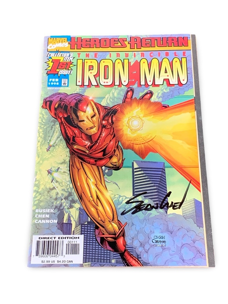 1998 Iron Man #1 – Heroes Return from Marvel Comics, signed by Kurt Busiek. The comic is in great collectible condition.