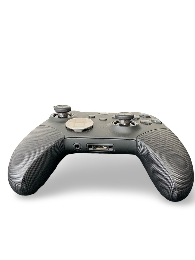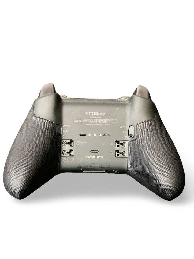 Used Microsoft Xbox Elite Series 2 controller, model 1797, rear view shown. Includes carrying case and accessories. Charging cable not included. Controller is fully functional and compatible with Xbox consoles and PC.