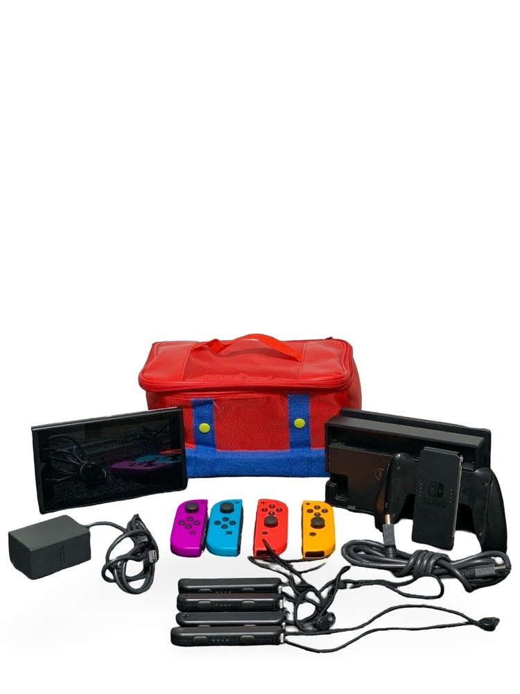 Nintendo Switch Console (HAC-001(-01)) - Used, Tested Working with 4 Joy-Cons, Dock, Charger, HDMI, Controller Grip & Super Mario Bros. Carrying Case