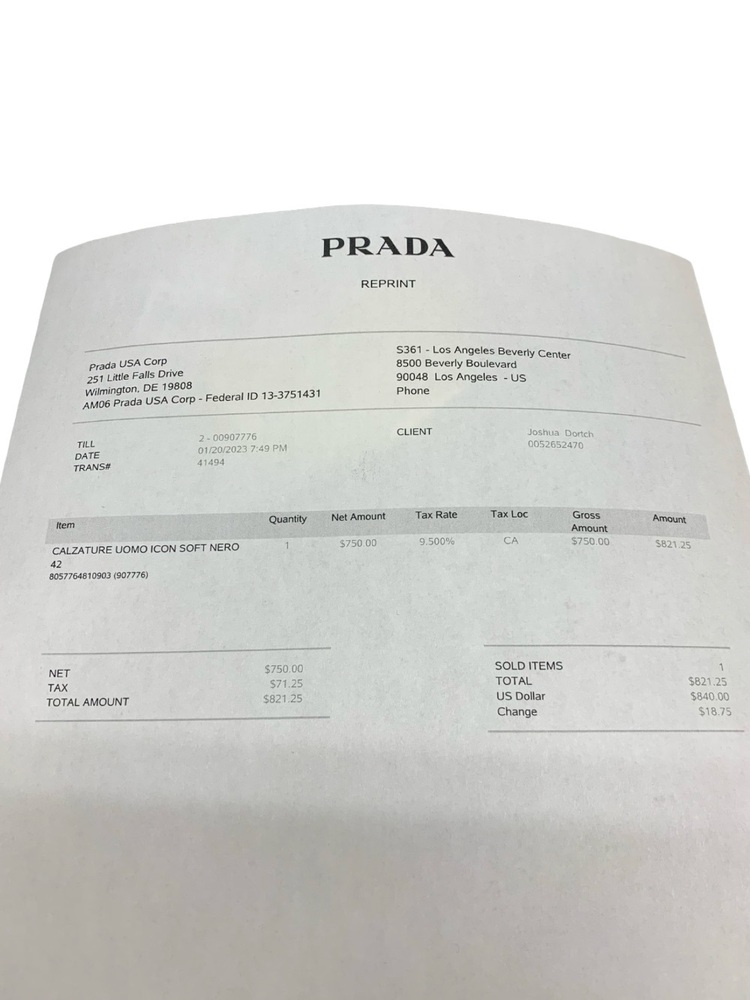 This listing is for a pair of Prada Calzature Uomo Icon Soft Nero shoes, in used condition, presented in the original box. Proof of purchase is available via emailed receipt.