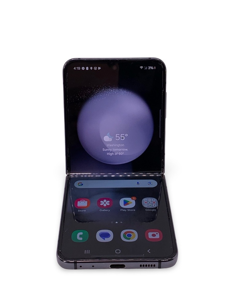 This listing is for a Samsung SM-F731U Galaxy Z Flip 3 in used condition. Fully unlocked and with ample storage, this device combines portability with the sleek foldable design Samsung is known for.
