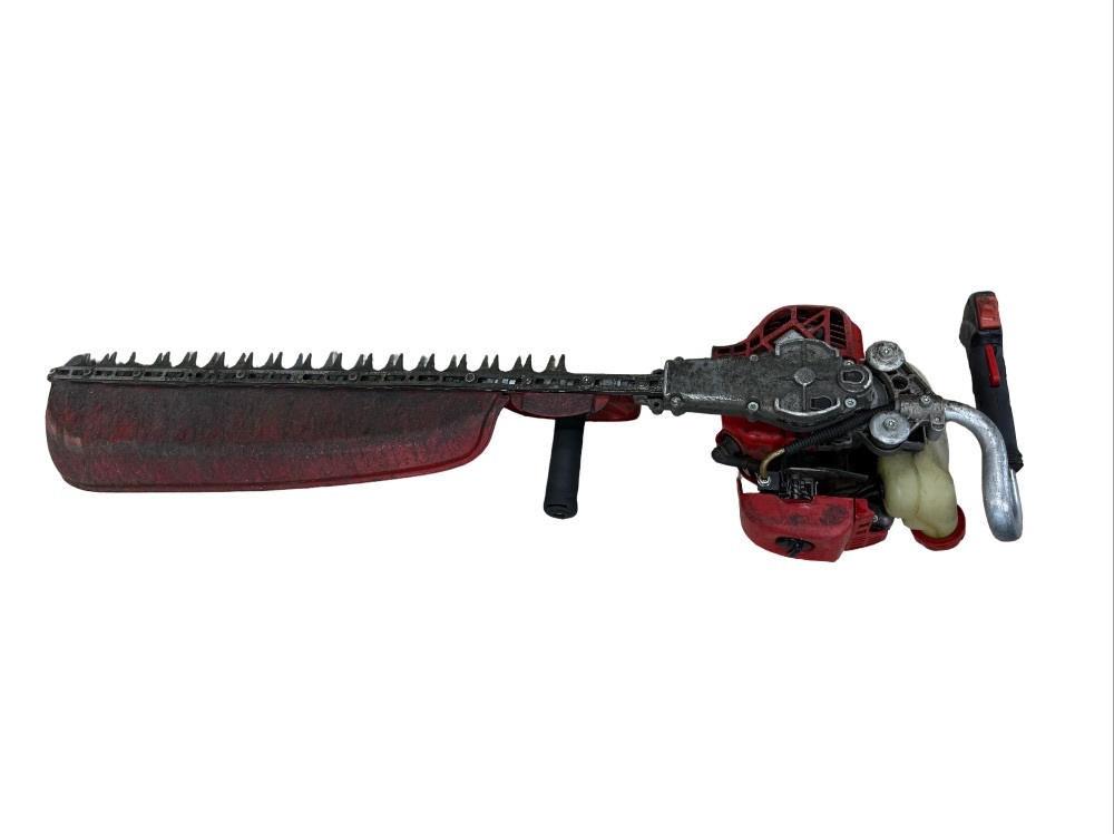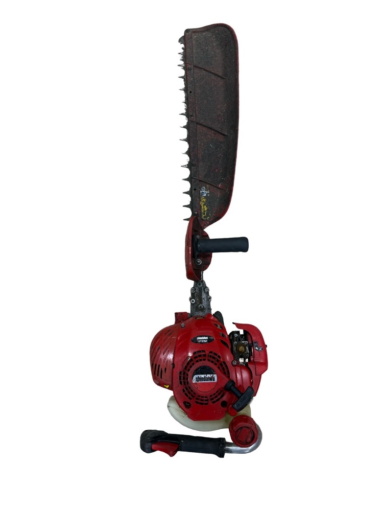 This pre-owned, gas-powered Shindaiwa Lawn & Garden Hedge Trimmer is a single-sided tool designed for efficiency. The engine is a 21.2cc, dual-stroke. Providing robust performance, being 38'' in length, it offers ample reach. However, it's worth noting that it's heavily used with several damaged teeth, which does not affect its performance. Ideal for anyone seeking a budget-friendly, functional tool.