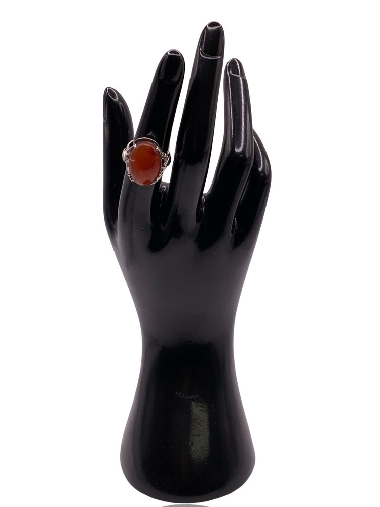 • Center Stone: Oval Coral-Like Orange/Red Stone